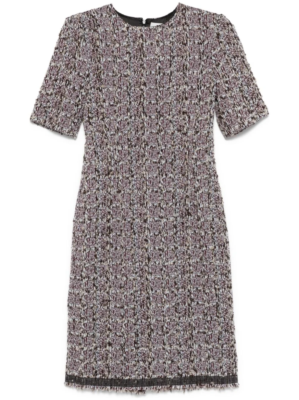 tweed midi dress Highlights - Burgundy - Concealed rear hook and zip fastening - Rear slit - Full lining - Crew neck Made in Italy Composition Lining: Viscose 100% Outer: Acrylic 55%, Cotton 36%, Wool 5%, Polyester 4% SIZE & FIT Model measurements Height 5 ft 9 in(1.76 m) Bust/Chest 32.28 in(82 cm) Hips 35.43 in(90 cm) Waist 25.19 in(64 cm) FittingInformation Designed for a slim fit that sits just away from the body offering a close yet comfortable fit Made from a midweight non-stretch fabric