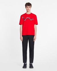 The exclusive print on this unisex t-shirt is inspired by the fabric and embroidery samples that Jeanne Lanvin brought back from her travels, particularly in China. With this print, the collection celebrates the Year of the Dragon, a symbol of luck, strength and health. Details - Loose-fitting printed jersey t-shirt - Exclusive Dragon print with the Lanvin logo - Made in Italy Size & fit - For more information, please see our size guide. Composition - Main fabric : 100% cotton knitted SKU: RU-TS0010-J109-P24340S