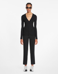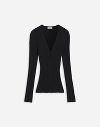 Details - V neck ribbed cardigan in silk and cashmere - Color: black - V neck long sleeve cardigan in light rib knit. - The knit pattern enhances the feminine fit. Can be worn as a twin set or light underpinning style. Composition - Main material: 35% cashmere, 35% wool, 30% silk Cleaning and care - Gently iron on the reverse side - Turn inside out before cleaning SKU: RW-CA0001-K004-P2310XS
