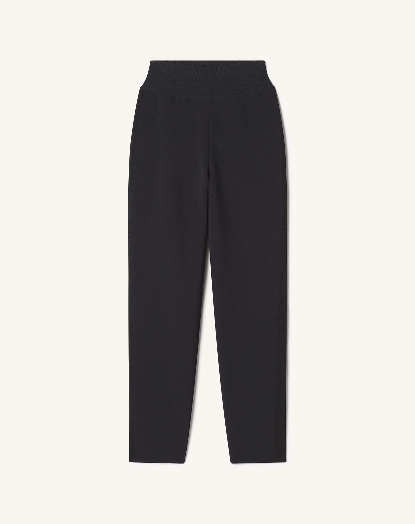 The knit fabric of these leggings is made using a blend of two techniques, combining viscose and Lycra to create a sculptural silhouette. On the sides, it also replicates the illusion of the braiding on tuxedo pants. The simple, elegant lines are ideal for daytime wear and can be paired with a flowing or loose-fitting top. Details - Leggings in double-sided viscose mailla - Straight fit - Ribbed waistband - Shiny bands on the side - Made in Italy Size & fit - This style fits true to size, take your normal size - For more information, please see our size guide. Composition - Main fabric : 80% viscose knitted,17% polyamide knitted,3% polyester knitted SKU: RW-TR0043-K086-P2610XS