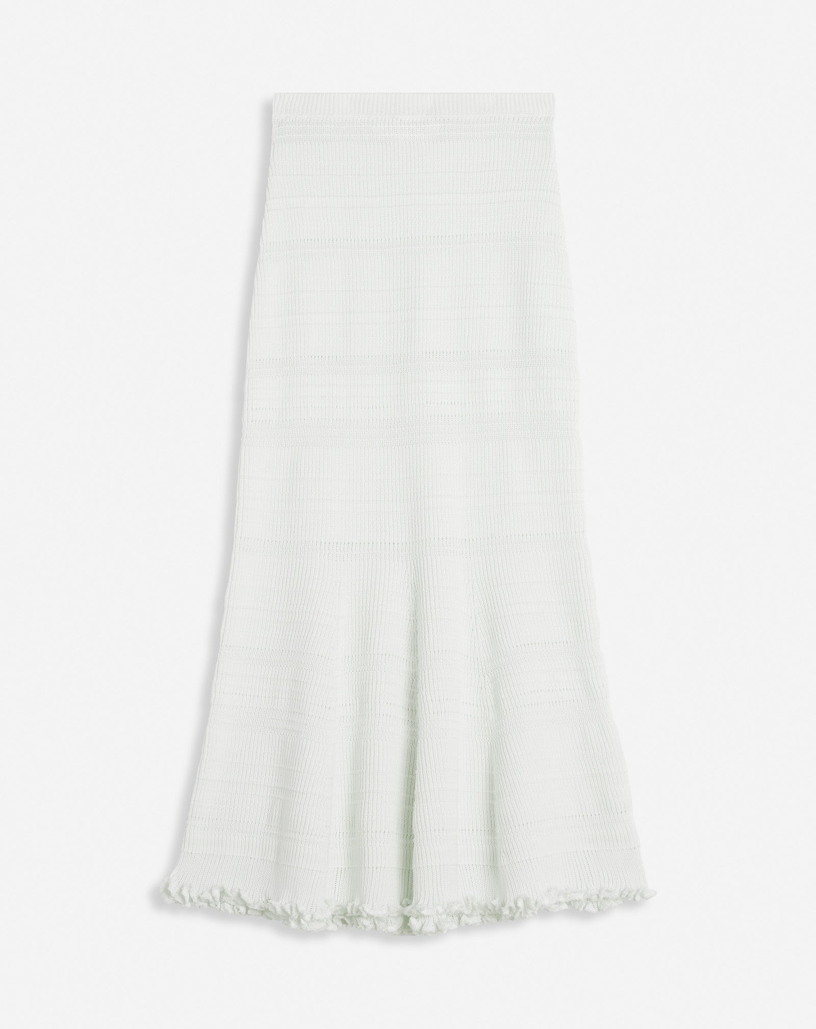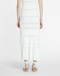 This knit skirt is part of the Lanvin Summer capsule collection. The lightness of its cotton and feminine fit make it an ideal piece for chic, casual daywear. Details - Knit cotton midi skirt - Flared fit - Slip-on - Made in Italy Size & fit - This style fits true to size, take your normal size - For more information, please see our size guide. Composition - Main fabric : 100% cotton knitted SKU: RW-ST0050-K055-P2502XS