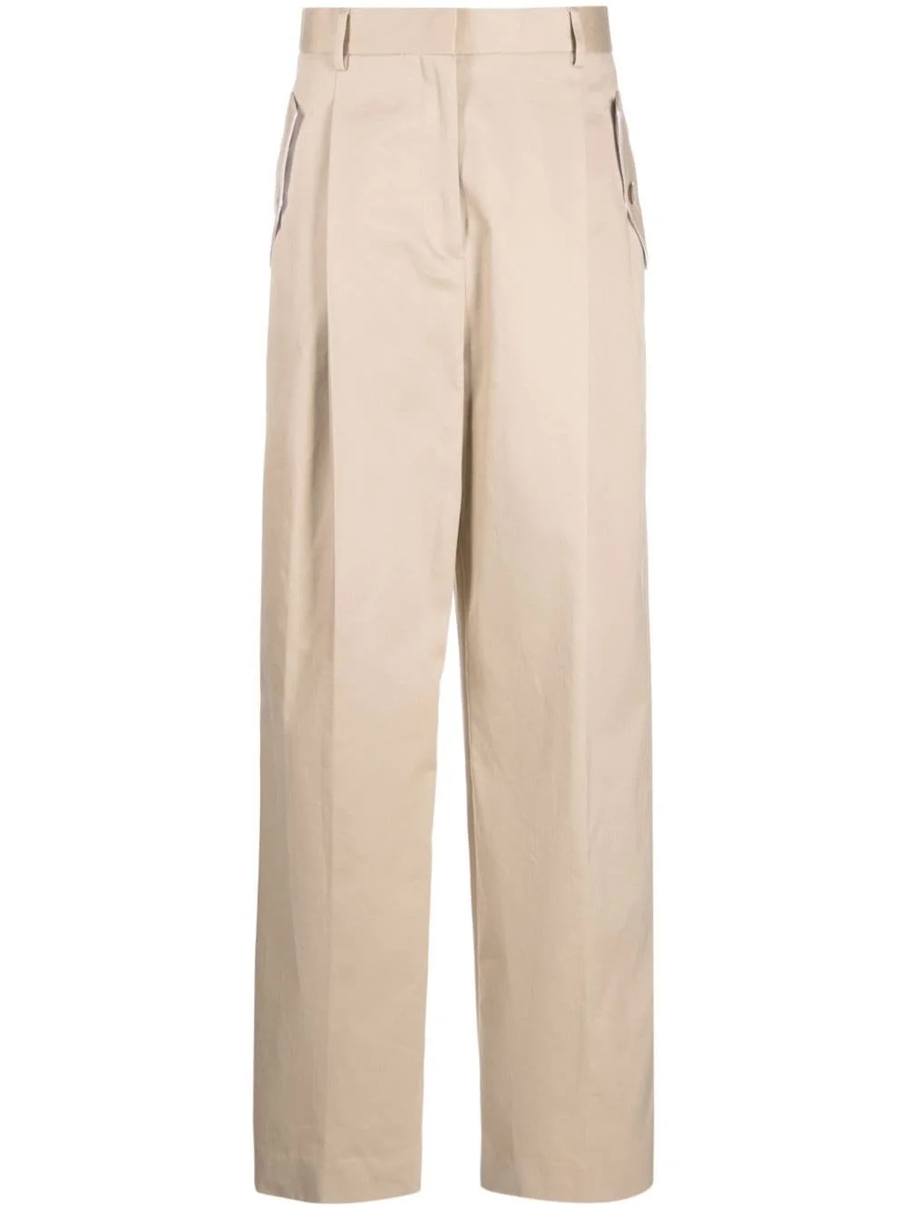 wide-leg gabardine trousers Highlights - Beige - Cotton - Gabardine weave - High waist - Belt loops - Pleat detailing - Two side button-fastening pockets - Two rear flap pockets - Wide leg - Straight hem Made in Italy Composition Lining: Cotton 100% Outer: Cotton 100% SIZE & FIT Model measurements Height 5 ft 11 in(1.8 m) Bust/Chest 30.7 in(78 cm) Hips 35.03 in(89 cm) Waist 24.4 in(62 cm) FittingInformation Designed with a wide-leg cut, these trousers allow for a close fit at the waist and offer a loose and roomy fit over the leg Made from a midweight non-stretch fabric This piece fits true to size – take your usual size Washing instructions Machine Wash