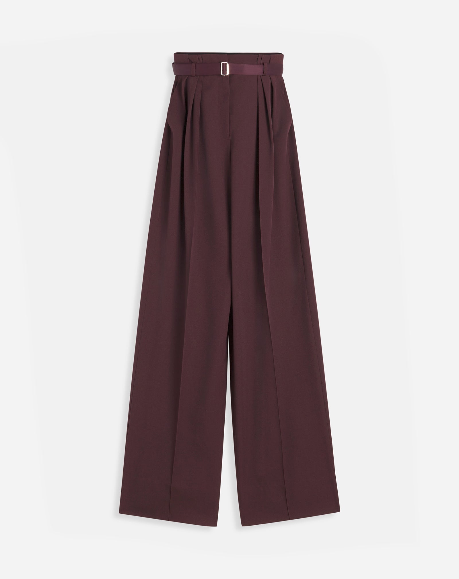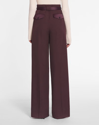 This House classic is an essential in the Lanvin woman's wardrobe. The pleating at the top of the pants structures the silhouette for an elegant fit, which is enhanced by the integrated belt. Details - Woven wool wide-leg pants with a belt - Fastening with an invisible zipper and a button - Four pockets - Made in Italy Size & fit - This style fits true to size, take your normal size - This is a relaxed fit, size down if you are between two sizes - For more information, please see our size guide. Composition - Main fabric : 100% wool woven - Lining : 100% viscose woven SKU: RW-TR0002-5857-A243936