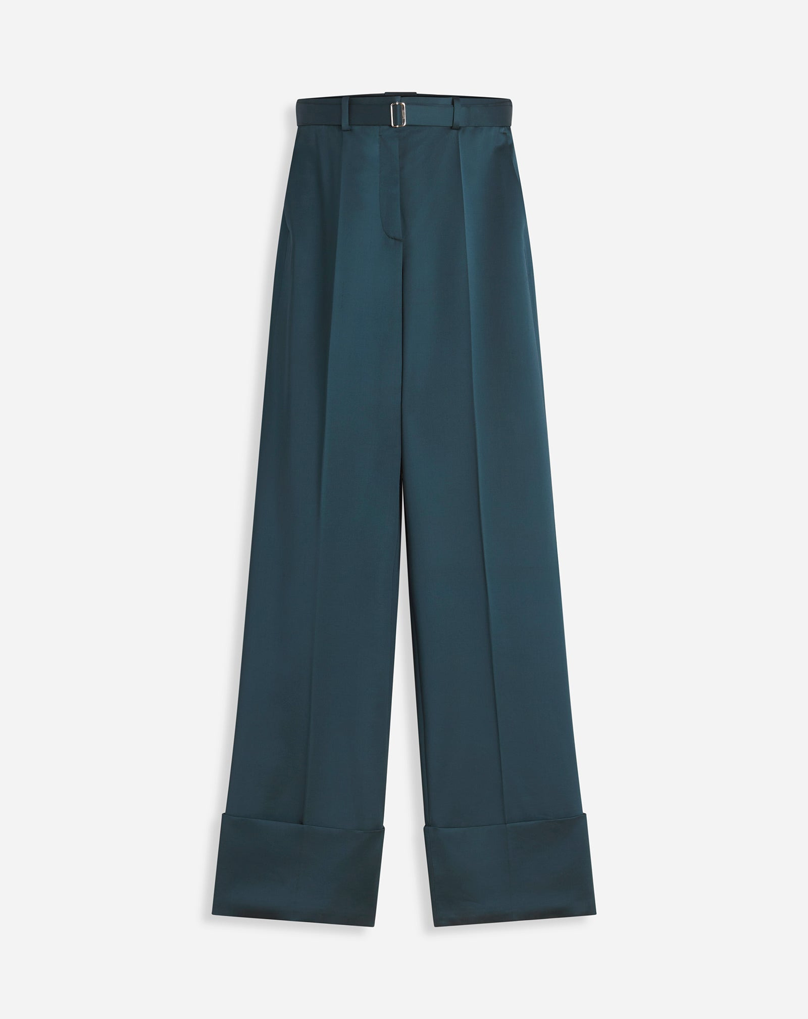 These pants take their inspiration from men's suits for a modern, elegant silhouette. The forest green color was created exclusively for Lanvin. They are completed with a flowing, wrinkle-resistant fabric. Details - Wide-leg cuffed pants in wool - Zipped fastening - Welt pockets on the back - Viscose lining - Made in Italy Size & fit - This is a relaxed fit, size down if you are between two sizes - For more information, please see our size guide. Composition - Main fabric : 100% wool woven - Lining : 100% viscose woven SKU: RW-TR0510-6002-H2445536