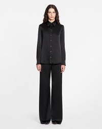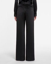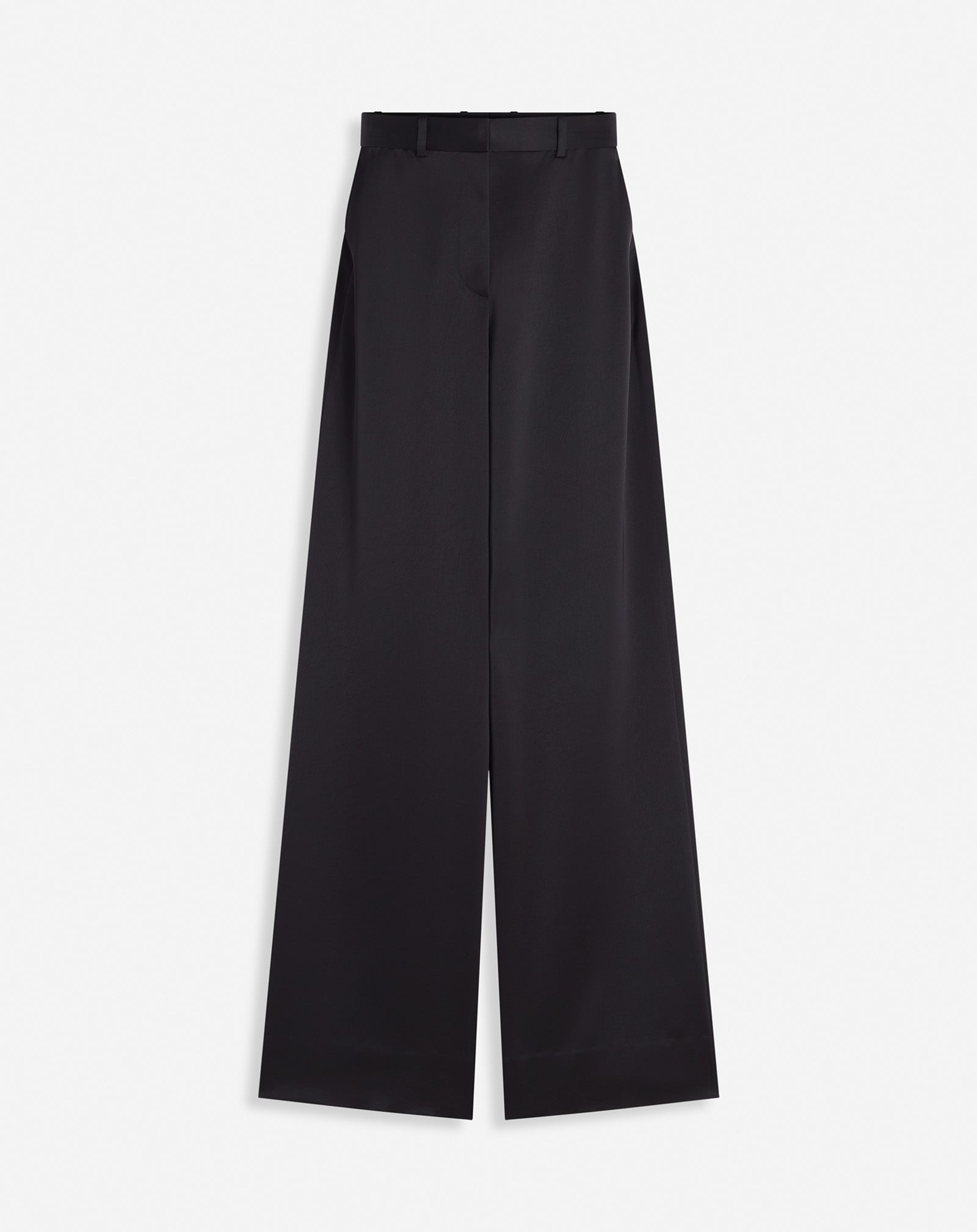 These pants, made in Italy for the House of Lanvin, are crafted from a satin fabric and feature a wide-leg fit to create a modern silhouette with feminine curves. Details - Wide-leg solid-color tailored pants. - Flowy, relaxed fit - Mid-rise - Button closure - Side slant pockets with curved opening - Color: black - Made in Italy Size and fit - This style fits true to size, take your usual size. - For more information, please see our size guide. Composition - Main fabric: 63% triacetate, 37% polyester - Lining: 100% cotton Cleaning and care - All our items are shipped in a luxurious Lanvin gift box done in the colors of the brand. - At Lanvin, we take great care to ensure we only select the finest materials. Please check the care label on your ready-to-wear item before proceeding with any cleaning. - If you have a question or concern, please contact our customer service department or visit one of our stores, where our staff will be happy to assist you and provide you with more information about our services. SKU: RW-TR0010-5822-H231036