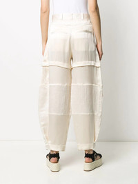 wide-leg trousers Of the opinion that bigger is better? Us too! That's why these cream silk and linen-blend wide-leg trousers from Lanvin are calling our name. Go big or go home. Featuring a mid rise, belt loops, a button and zip fly, a wide leg, a tapered leg, contrasting panels, a layered design and multiple pockets. Imported Composition Silk 100%, Linen/Flax 72%, Viscose 28% SIZE & FIT Model measurements Height 5 ft 9 in(1.76 m) Bust/Chest 31.49 in(80 cm) Hips 35.03 in(89 cm) Waist 23.62 in(60 cm) Washing instructions Dry Clean Only