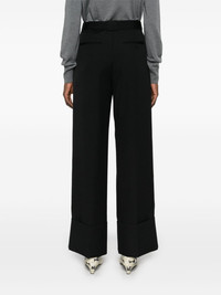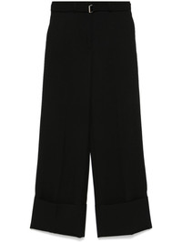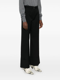 wool trousers Highlights - Black - Wool - Concealed front button, hook and zip fastening - Belt loops - Pressed crease - Two diagonal pockets to the sides - Rear jetted pocket - Rear button-fastening jetted pocket - Turn-up hem Made in Italy Composition Outer: Wool 100%, Buffalo Horn 100% Lining: Viscose 100% SIZE & FIT Model measurements Height 5 ft 11 in(1.8 m) Bust/Chest 32.67 in(83 cm) Hips 36.22 in(92 cm) Waist 24.4 in(62 cm) FittingInformation Designed with a wide-leg cut, these trousers allow for a close fit at the waist and offer a loose and roomy fit over the leg Made from a midweight non-stretch fabric
