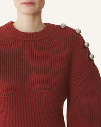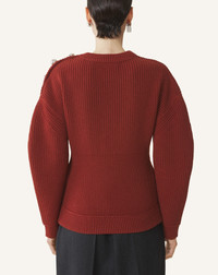 The balloon sleeves on this sweater are designed to accentuate its rounded, cocoon-like shape. The straight ribbing and horizontal darts create a visual contrast, recalling one of the Maison's signature aesthetics. Details - Wool ribbed sweater - Fitted waist - Round neck - Dropped shoulders - Ribbed cuffs - Silver ball buttons on shoulder - Made in Turkey Size & fit - This style fits true to size, take your normal size - For more information, please see our size guide. Composition - Main fabric : 100% wool knitted SKU: RW-PO0003-K066-H25657XS