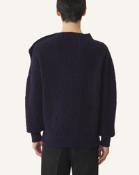 The ribbed knit of this sweater features a pearled texture and a diamond pattern reminiscent of Jeanne Lanvin's taste for geometric shapes. The button collar and straight cut make it the perfect design for casual wear. Details - Wool openwork diamond detail sweater - Straight fit - Buttoned high collar - Diamond-stitched main body and ribbed-knit upper body - Dropped shoulders - Ribbed cuffs - Made in Turkey Size & fit - This style fits true to size, take your normal size - For more information, please see our size guide. Composition - Main fabric : 100% wool knitted SKU: RM-PO0002-K066-H25256XS