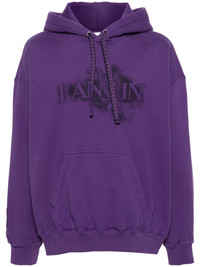 x Future logo-print cotton hoodie Boasting Lanvin's logo across the front in a faded effect, this purple hoodie is made from cotton and complete with the brand's signature chevron drawstring. Highlights - Plum purple - Cotton - Jersey texture - Distressed effect - Slouchy drawstring hood - Drop shoulder - Long sleeves - Logo print to the front - Front pouch pocket - Ribbed cuffs and hem - Fleece lining - Pull-on style Imported Composition Cotton 100%, Silicone 100% SIZE & FIT Model measurements Height 6 ft 2 in(1.89 m) Bust/Chest 39.76 in(101 cm) Hips 37.4 in(95 cm) Waist 29.92 in(76 cm) FittingInformation Designed to be unstructured, offering a loose fit throughout Made from a midweight non-stretch fabric, this piece offers minimal elasticity when worn This piece fits true to size – take your usual size