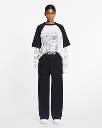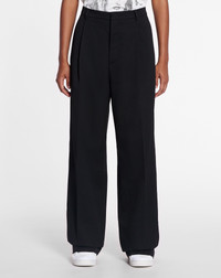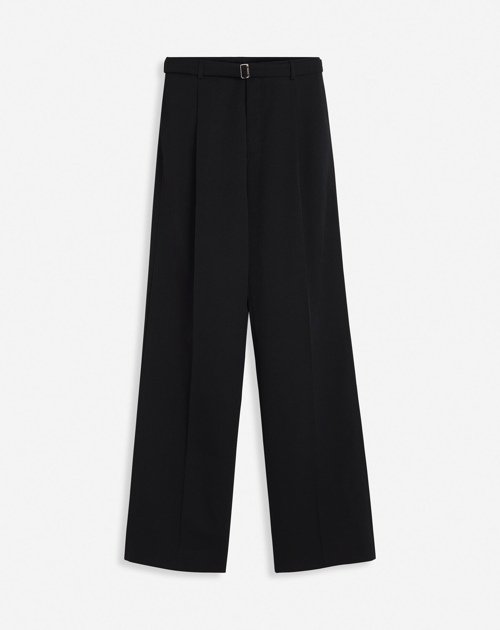 Created as part of the LANVIN LAB x FUTURE collaboration, these pants with their elegant lines and wide legs are perfectly in keeping with the contemporary, sophisticated spirit of the House. As with many of the pieces from the collaboration with the artist FUTURE, its uniqueness lies in its fit, which has been designed to integrate both the Lanvin woman's and the Lanvin man's wardrobe. Details - Plain wide-leg pants - Side welt pockets - Metal zip closure - Belt buckle and belt loops - Central crease - Full-length lining - Made in Italy Size & fit - This style is unisex: for women, take one size down your normal size, for men, take your normal size - For more information, please see our size guide. Composition - Main fabric : 100% wool woven - Lining : 100% viscose woven SKU: RU-TR0049-4885-P2410S