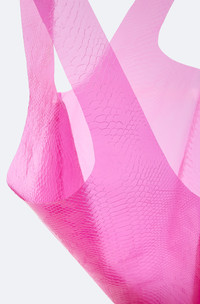 Featured in the Holiday Gift Guide Collection Tote in a new, innovative transparent snake material. Open style to easily carry all belongings. Logo embossed on bottom corner. - Material: 100% Polyurthane