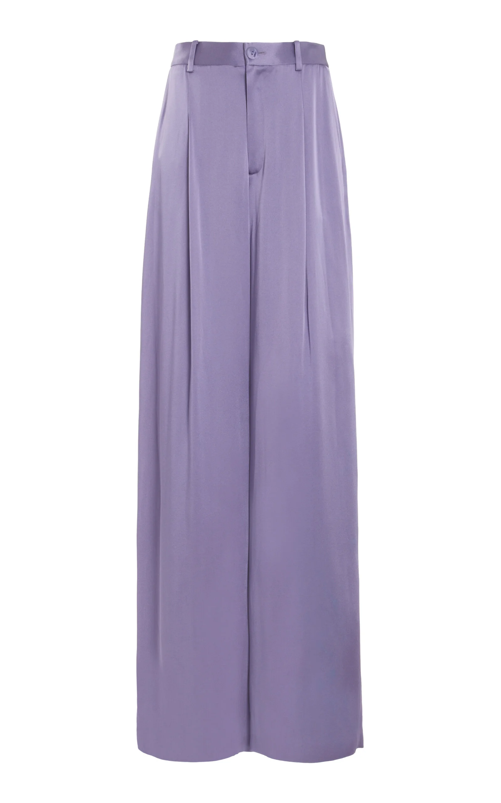 PRODUCT DETAILS - unlined - Relaxed fit, pleated, wide leg silhouette - Zip and button fastening - Composition: 100% Viscose - Color: Grape - Dry clean only - Made in United States of America