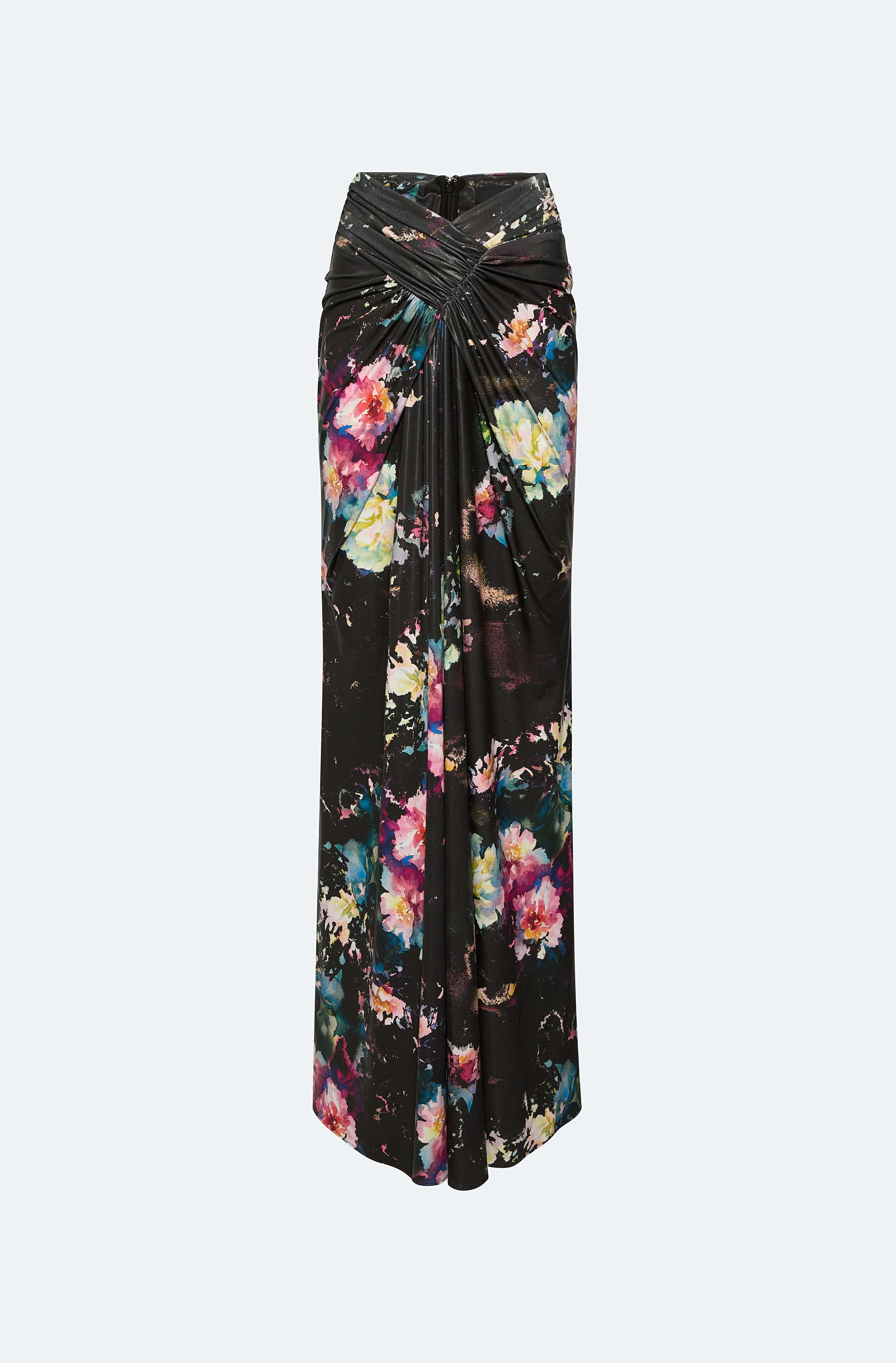 Featured in the Summer 25 Collection Wrap maxi skirt in new technicolor floral print crafted from our ultra-comfortable, lightweight stretch jersey. Features a zipper at side waist. Pair with our floral jersey bodysuit for a complete look. - Material: 94% Polyester, 6% Spandex - Care: Hand Wash Cold or Dry Clean - Fit: True to size - Model is 5'10 and Wearing a Size S