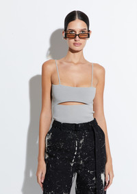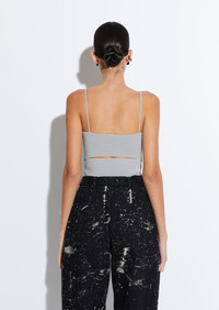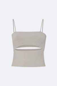 Crepe Matte Viscose Spaghetti Strap Tank With Center Front Slit Detail - Material: 83% Rayon Viscose, 17% Elite Polyester. - Care: Hand Wash Cold or Dry Clean - Fit: True To Size - Model Is 5'10" And Wearing a S