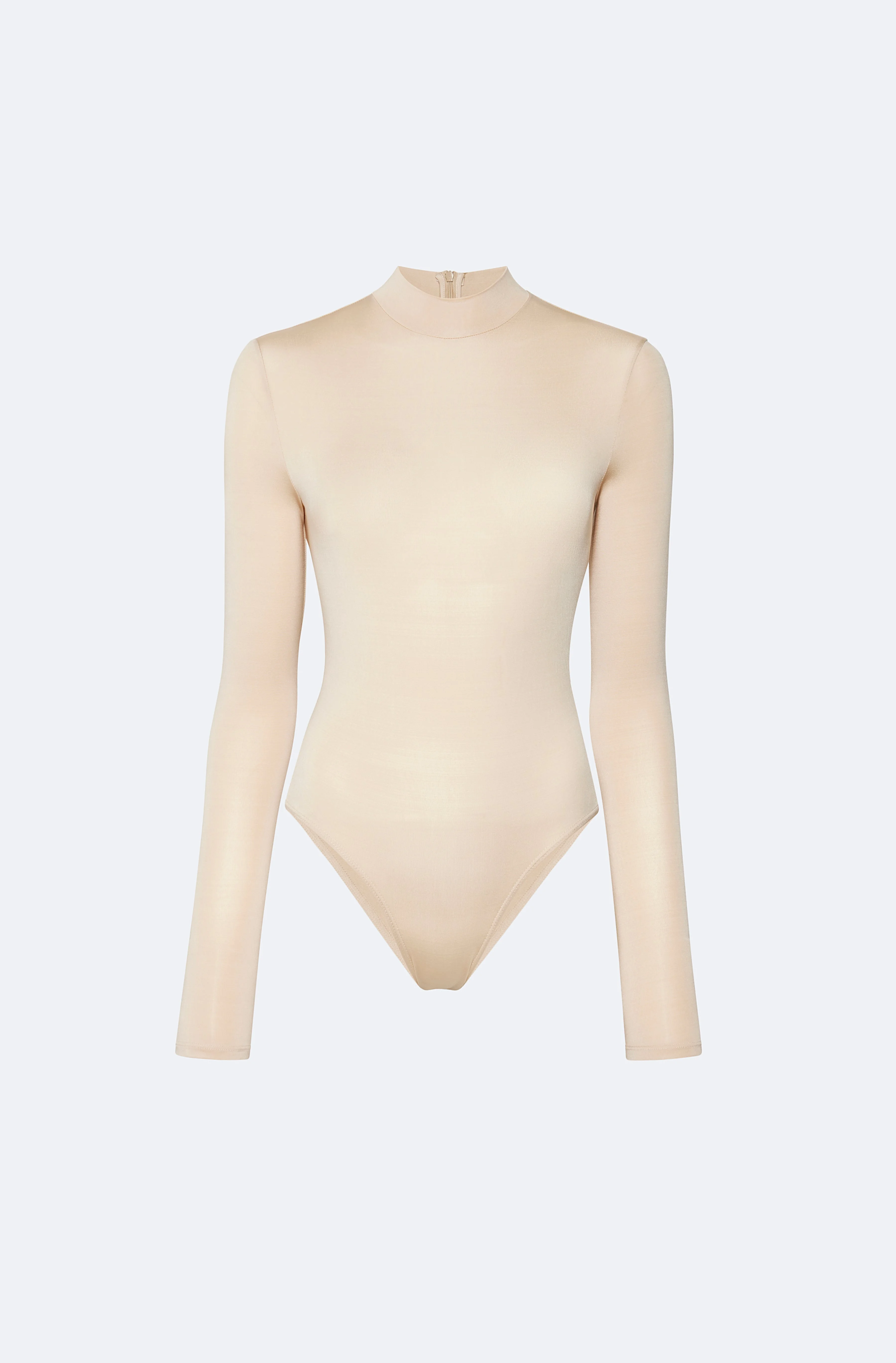 Lightweight Jersey Mock Neck Bodysuit. Hidden Zipper At Back And Snap Closure. - Material: 94% Acetate, 6% Elastane. - Care: Hand Wash or Dry Clean - Fit: True To Size - Model Is 5'10" And Wearing a S