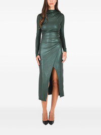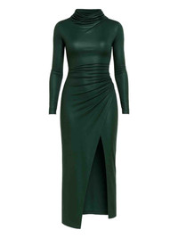 draped-neck slit midi dress Highlights - Green - Draped waist - High draped neck - Long sleeves - Concealed zip closure - Side slit Made in United States Composition Outer: Polyester 93%, Spandex/Elastane 7% Washing instructions Read Manufacturer Guidelines
