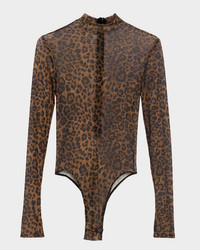 - Printed in a bold leopard pattern, this LAPOINTE bodysuit is crafted in mesh and is designed for a slim, figure-hugging silhouette - Mock neckline - Long sleeves - High-cut legs - Formfitting - Minimal seat coverage - Invisible back zipper - Snap gusset - Polyester/elastane - Made in Portugal