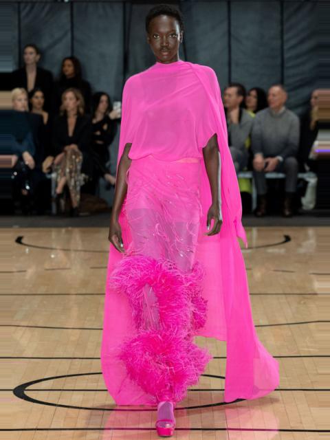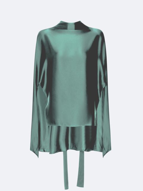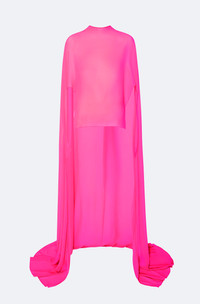 New statement top in our sheer, lightweight georgette fabric. Features a high-low cape detail and invisible zipper at center back. - Material: 100% Polyester - Care: Hand Wash Cold or Dry Clean - Fit: True to size - Model is 5'10 and Wearing a Size S