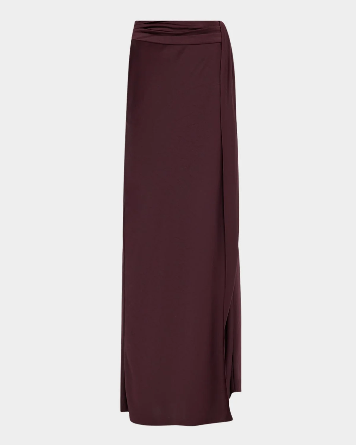 - LAPOINTE lightweight satin skirt featuring an asymmetric waist drape and a side slit - High waist - Full length - Skirt falls straight from hip to hem - Zip closure - Polyester - Dry clean - Imported