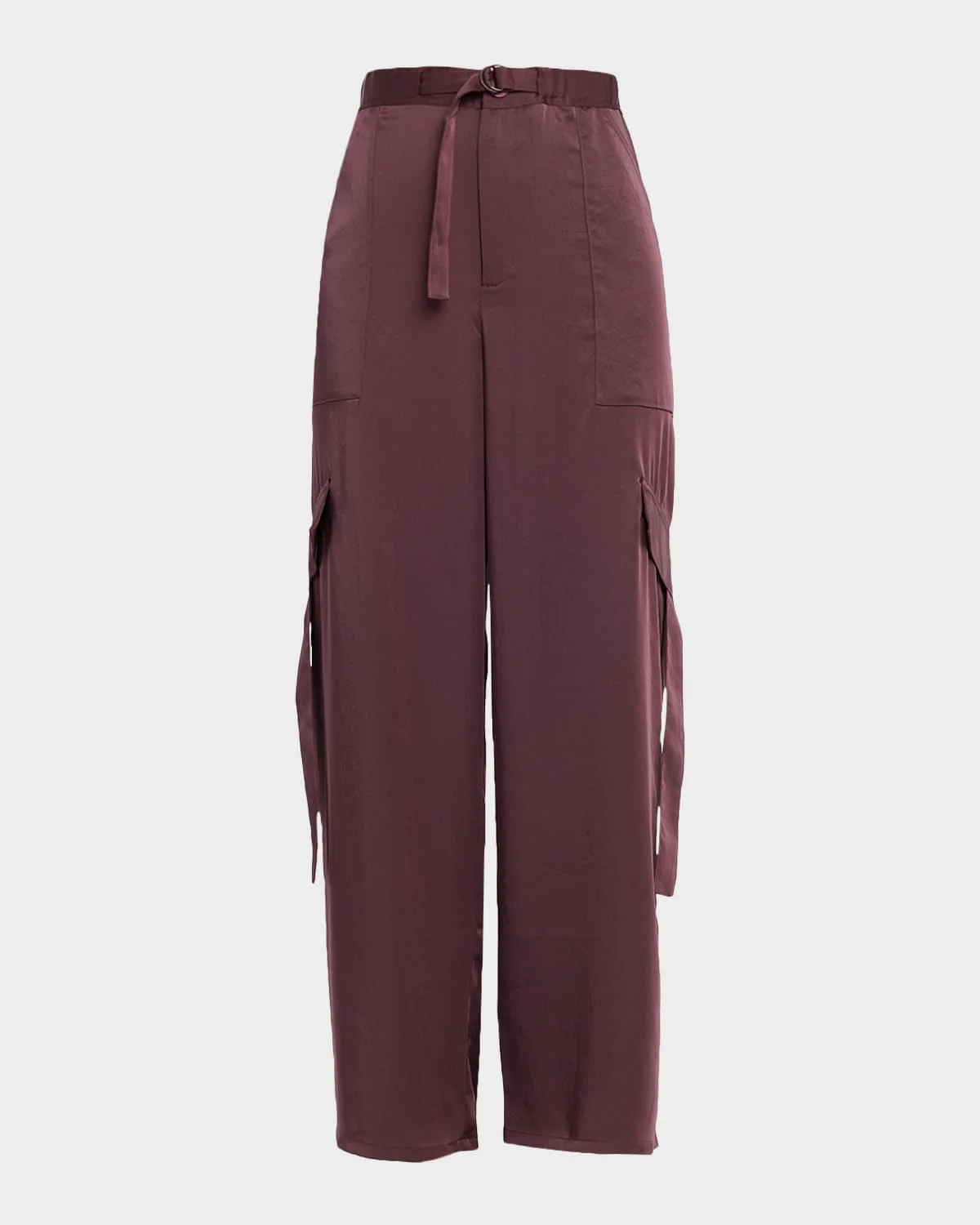 - LAPOINTE lightweight satin utility pants featuring a D-ring belted waist and leg cargo pockets with ties - High rise - Hip patch pockets - Wide legs - Hook/zip fly; belt loops - Polyester - Dry clean - Imported