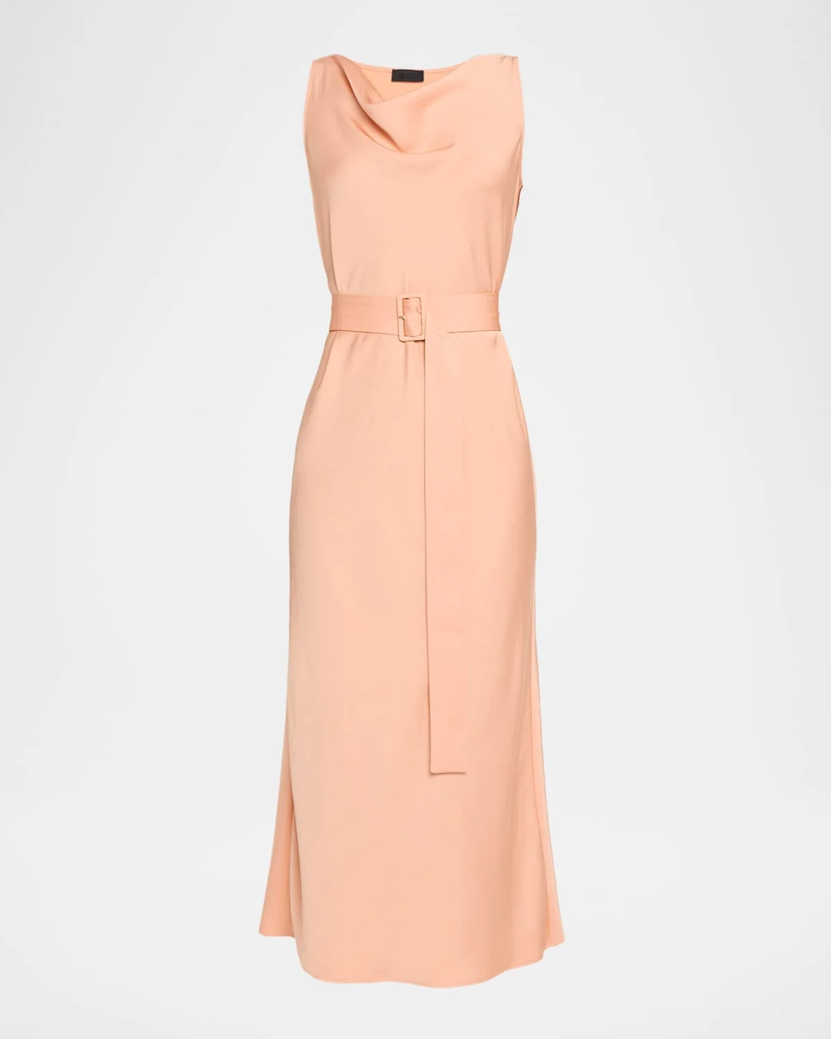 Lightweight Satin Cowl-Neck Belted Midi Dress