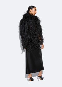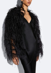 Featured In The Fall 2024 Runway Collection This semi-sheer jacket features hand embroidered feathers throughout in a unique marbled pattern technique. - Materials: 100% Real Ostrich Feathers - Care: Professional Care Only - Fit: Relaxed fit. True to Size - Model is 5'10" and Wearing a S