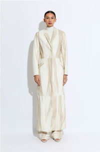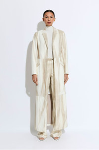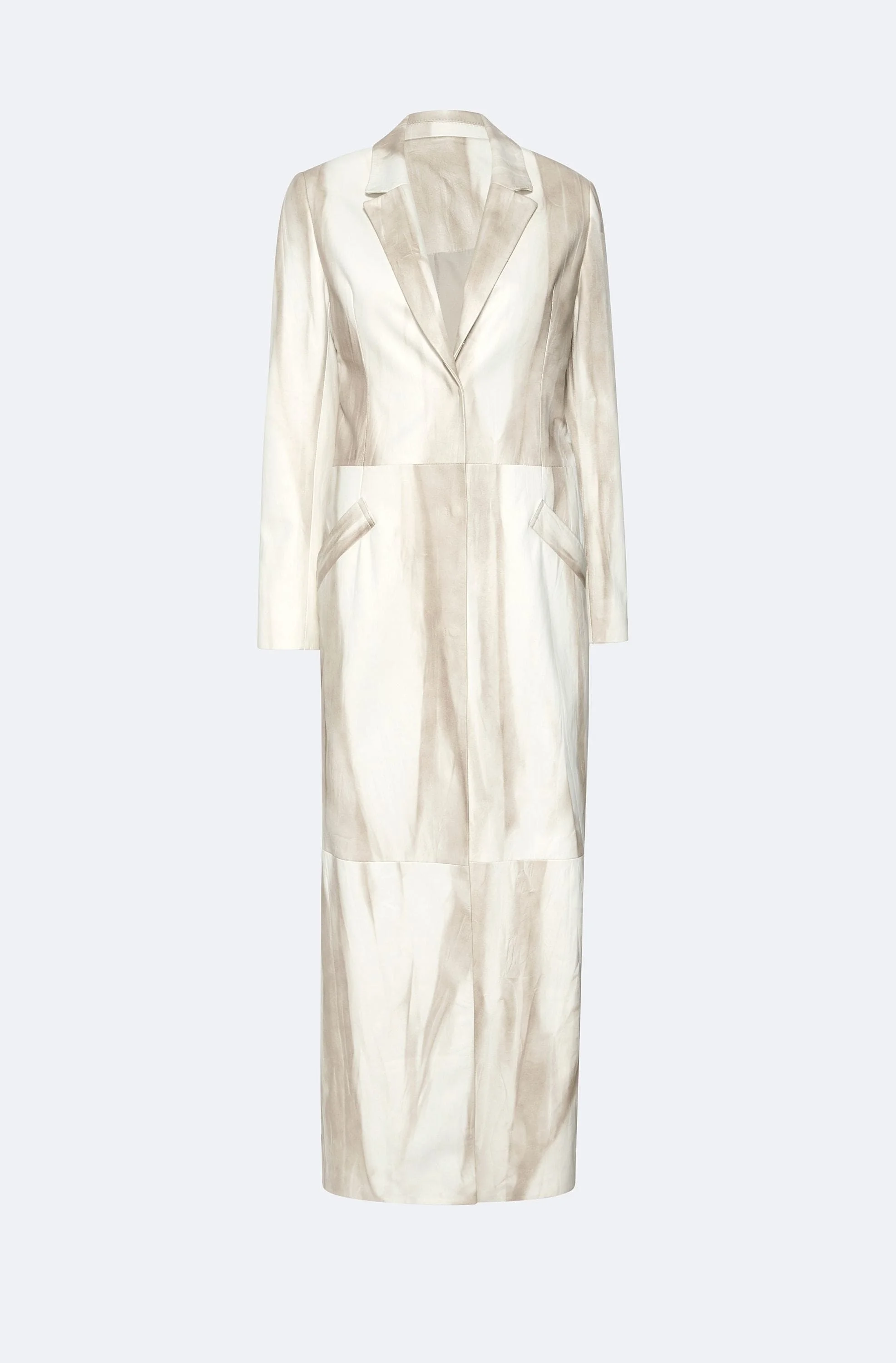 Featured In The Pre Fall 2025 Collection Full-length, marbled nappa leather coat in 100% lambskin. Features hidden button front closure, notched lapels, and welt pockets. Pair with our marbled nappa leather double seam pants for the complete look. - Material: 100% Lambskin - Care: Hand Wash Cold or Dry Clean - Fit: True to size - Model is 5'10 and Wearing a Size 2