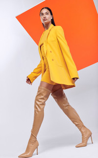 PRODUCT DETAILS - As featured in the Pre-Fall '22 lookbook - Relaxed fit, double breasted, peaked lapels, lined - Button fastening along front - This style fits true to size, we suggest taking your normal size - Composition: 90% POLYESTER, 10% ELASTANE - HAND WASH COLD, HANG DRY OR DRY CLEAN - Made in Italy SIZE & FIT - Our model is 180cm/ 5'11" and wearing a size 2 - This item fits true to size - We suggest taking your normal size