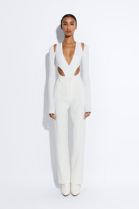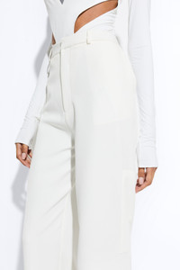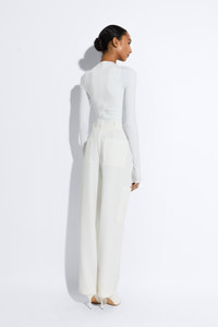 Tapered trouser in our classic wrinkle-resistant luxurious matte crepe. Features a discreet side pocket detail and zip-front closure. This pant will take you seamlessly from day to night and everywhere in between with ease. - Material: 90% Polyester, 10% Elastane - Care: Hand Wash Cold or Dry Clean - Fit: True to size. - Model is 5'10 and Wearing a size 2