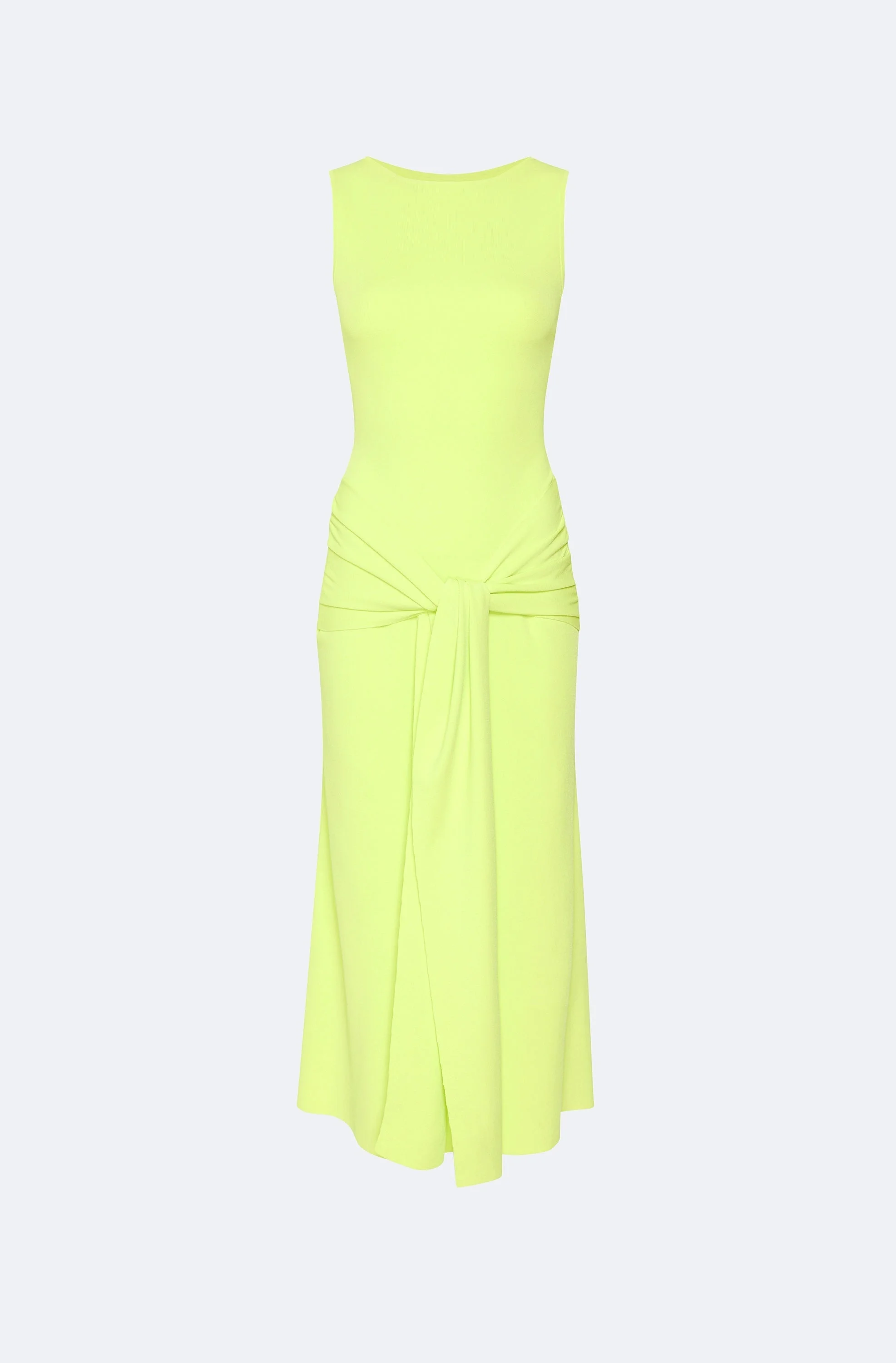 Boatneck dress in our bestselling matte viscose. Tie at the waist allows for an adjustable fit. - Material: 83% Rayon Viscose, 17% Elite Polyester - Care: Hand Wash Cold or Dry Clean - Fit: True to size. - Model is 5'10 and Wearing a size Small