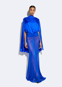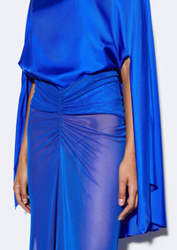 Featured in the Resort 25 Collection Maxi skirt in our everyday mesh fabrication. Features a center front gathering below the waist and ruching along the body. - Material: 94% Acetate, 6% Elastane - Care: Machine Wash or Dry Clean - Fit: True to size - Model is 5'11 and Wearing a size Small