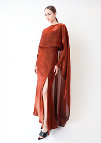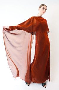 Metallic Organza Layered Gown With Cape