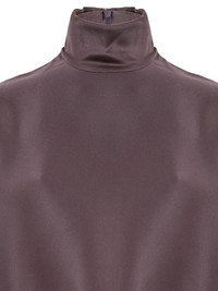 satin-effect turtleneck blouse Highlights - Brown - High neck - Long sleeves - Rear zip fastening Imported Composition Acetate 61%, Viscose 39% Washing instructions Dry Clean Only