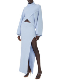 - Cross Front Detail with Cropped Front Hem - Mock Neck - Material: 100% Organic Cashmere - Trim: 100% Ostrich Feathers; Dyed, Struthio Camelus, Republic of South Africa - Care: Professional Dry Clean Only - Imported - Sustainability Certification: GOTS (Global Organic Textile Standard)