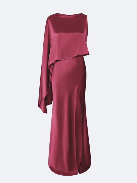 Featured In The Pre Fall 2025 Collection Asymmetric gown with a draped, layered top in our luxurious doubleface satin. Features side slit and zipper closure at back. - Material: 61% Acetate, 39% Viscose - Care: Hand Wash Cold or Dry Clean - Fit: True to size - Model is 5'10 and Wearing a Size 2