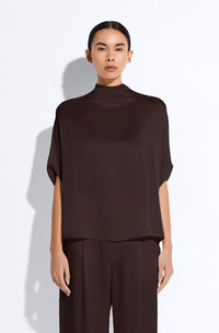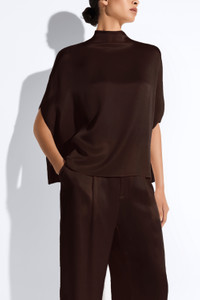 Bestselling cape tee in our luxurious doubleface satin featuring an oversized body to be easily tucked into pants and skirts. Fastens with invisible zipper at center back. - Materials: 61% Acetate, 39% Viscose - Care: Professional Dry Clean Only - Fit: True to size. Designed for an oversized look - Model is 5'10" and Wearing a S