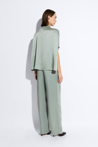 Cape tee in our luxurious doubleface satin. Easy body allows this style to be tucked into pants and skirts. Invisible zipper at the back. - Material: 61% Acetate, 39% Viscose - Care: Hand Wash Cold or Dry Clean - Fit: True to size. - Model is 5'10 and Wearing a size Small