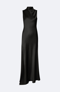 Doubleface satin sleeveless dress with a high slit and zipper closure. True to size. - Material: 61% Acetate, 39% Viscose - Care: Dry Clean Only