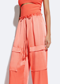 Doubleface satin straight leg pant with drawstring waistband. Relaxed fit. - Material: 61% Acetate, 39% Viscose - Care: Dry Clean Only - Fit: True To Size. Size Down For A Slimmer Fit. - Model Is 5'10" And Wearing a S
