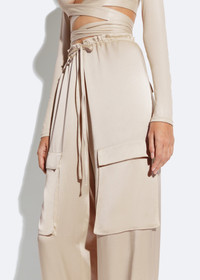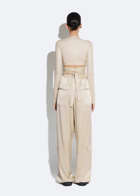 Doubleface satin straight leg pant with drawstring waistband. Relaxed fit. - Material: 61% Acetate, 39% Viscose - Care: Dry Clean Only