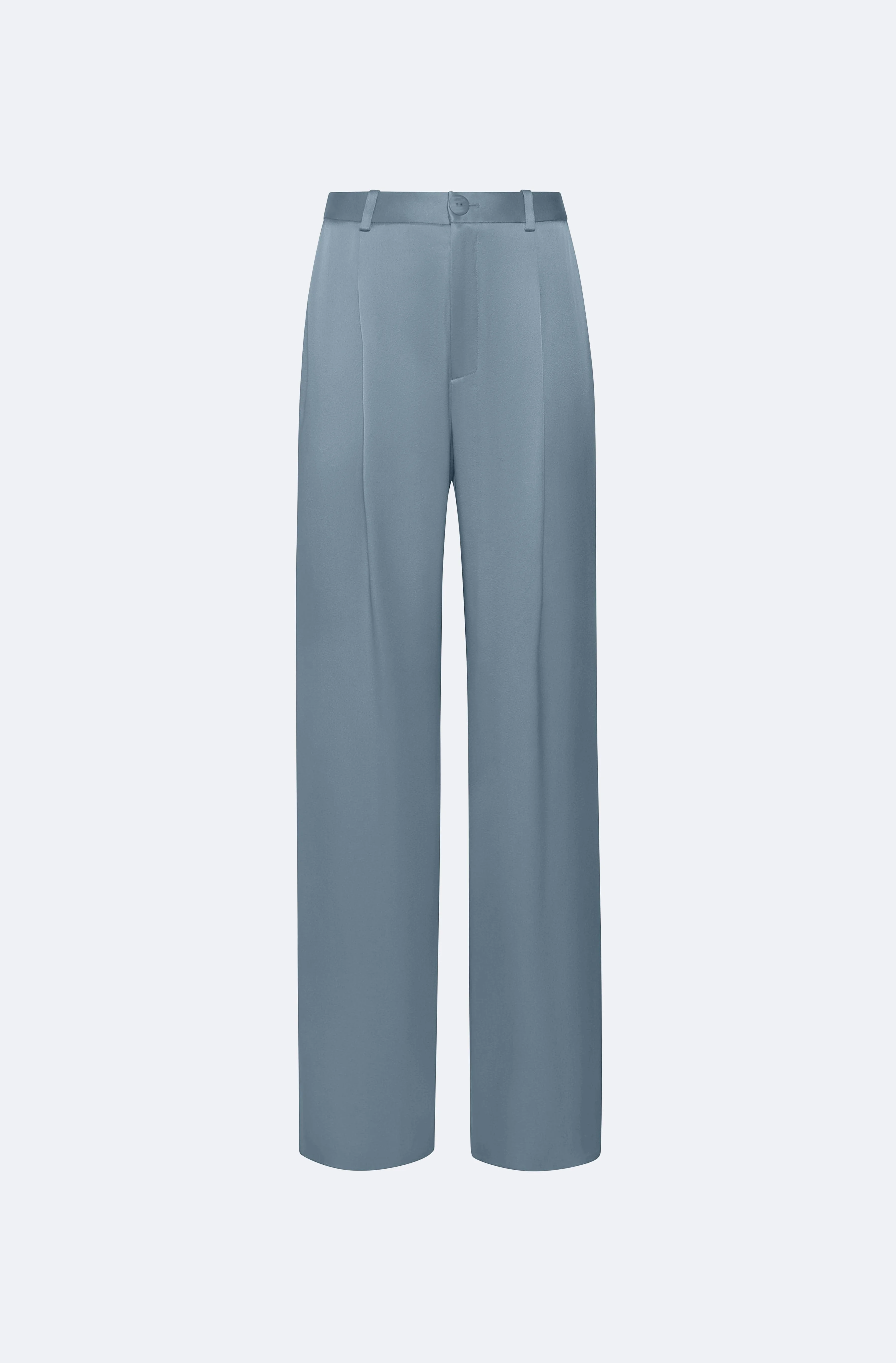 Relaxed pleated pant in our luxurious doubleface satin featuring a back pocket detail and center-front zip closure. Sits at the natural waist. - Material: 61% Acetate, 39% Viscose - Care: Hand Wash Cold or Dry Clean - Fit: Relaxed waist. For a more high waisted look, size down - Model is 5'10 and Wearing a size Small