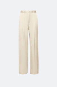 This relaxed pleated pant in our luxurious double face satin features a back pocket detail and center front zip closure. This style sits at the natural waist. - Material: 61% Acetate, 39% Viscose - Care: Hand Wash Cold or Dry Clean - Fit: Relaxed waist. For a more high waisted look, size down - Model is 5'10 and Wearing a size Small