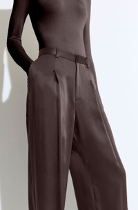 Featured In The Pre Fall 2025 Collection This relaxed pleated pant in our luxurious double face satin features a back pocket detail and center front zip closure. This style sits at the natural waist. - Material: 61% Acetate, 39% Viscose - Fit: Relaxed waist. For a more high waisted look, size down - Care: Professional Dry Clean Only - Model is 5'10" and Wearing a size 2