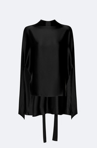 Our bestselling doubleface satin cape tee in a new silhouette, featuring oversized body and scarf detail at neck. - Material: 61% Acetate, 39% Viscose - Care: Professional Dry Clean Only - Fit: Oversized fit - Model is 5'10" and Wearing a S