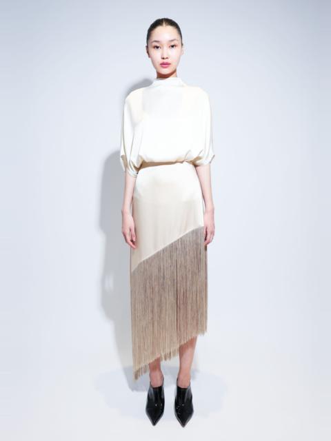 Featured in the Summer 25 Collection Wrap maxi skirt in our luxurious doubleface satin. Features slit at leg and a zipper at side waist. - Material: 61% Acetate, 39% Viscose - Care: Hand Wash Cold or Dry Clean - Fit: True to size - Model is 5'10 and Wearing a Size 2