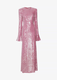 Featured in the Resort 25 Collection Maxi dress in our sequin viscose fabrication. Features flare sleeves and exaggerated shoulders. Invisible zipper at the back. - Material: 100% Viscose - Care: Dry Clean Only - Fit: True to size - Model is 5'10 and Wearing a Size 2