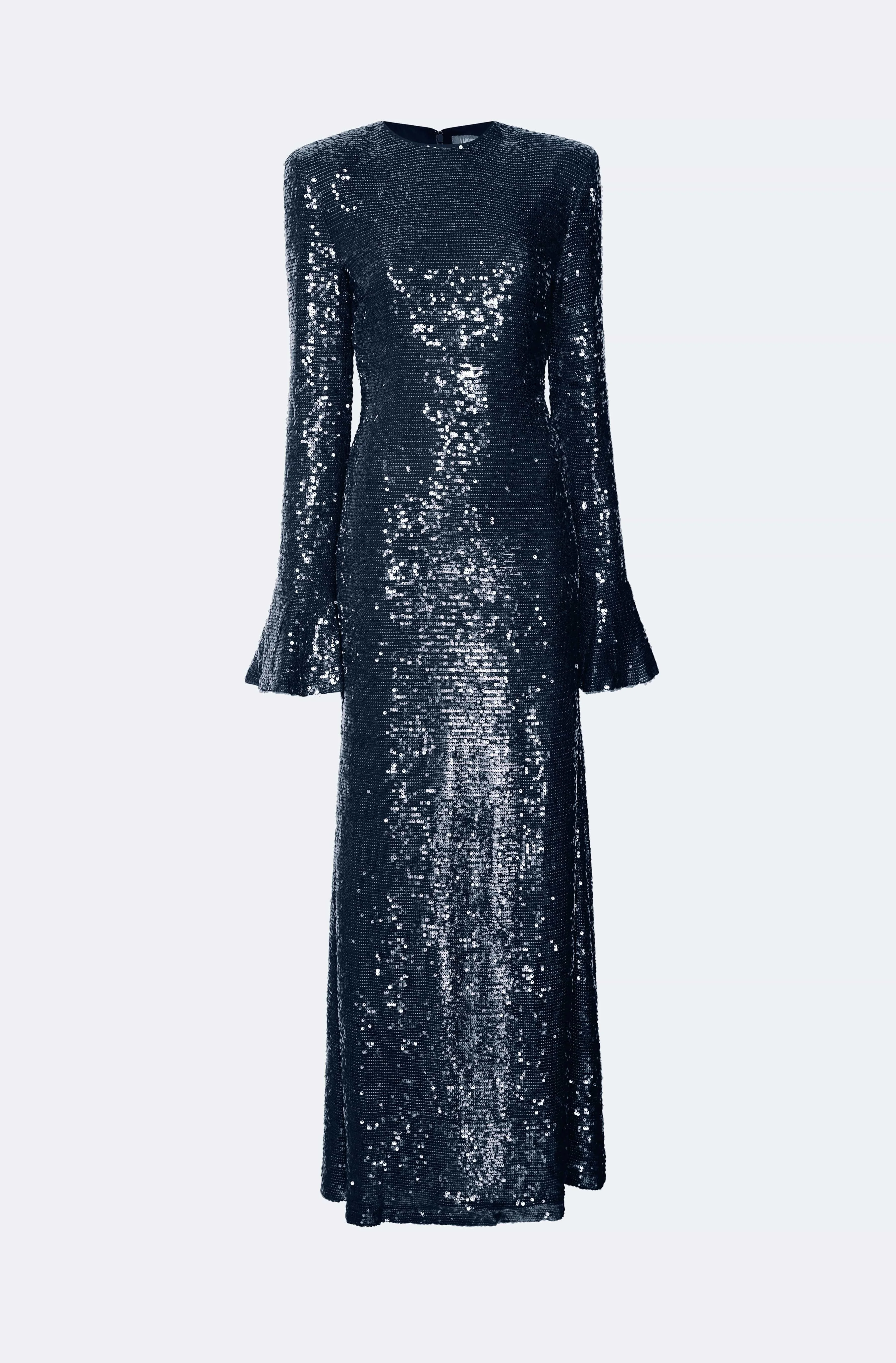 Featured in the Resort 25 Collection Maxi dress in our sequin viscose fabrication. Features flare sleeves and exaggerated shoulders. Invisible zipper at the back. - Material: 100% Viscose - Care: Dry Clean Only - Fit: True to size - Model is 5'10 and Wearing a Size 2