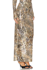 - Sequin textile - Imported - Hand wash recommended - Unlined - Pull-on styling with elastic waistband - Sequin embellished fabric with back vent - Item not sold as a set - Waist to shortest hem measures approx 15" and to longest hem approx 41" in length - Revolve Style No. LOIN-WQ21 - Manufacturer Style No. R4256057OAF