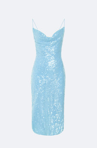 FINAL SALE Sequin viscose midi dress with cowl neckline and adjustable back tie. True to size. - Material: 100% Viscose - Care: Professional Dry Clean Only